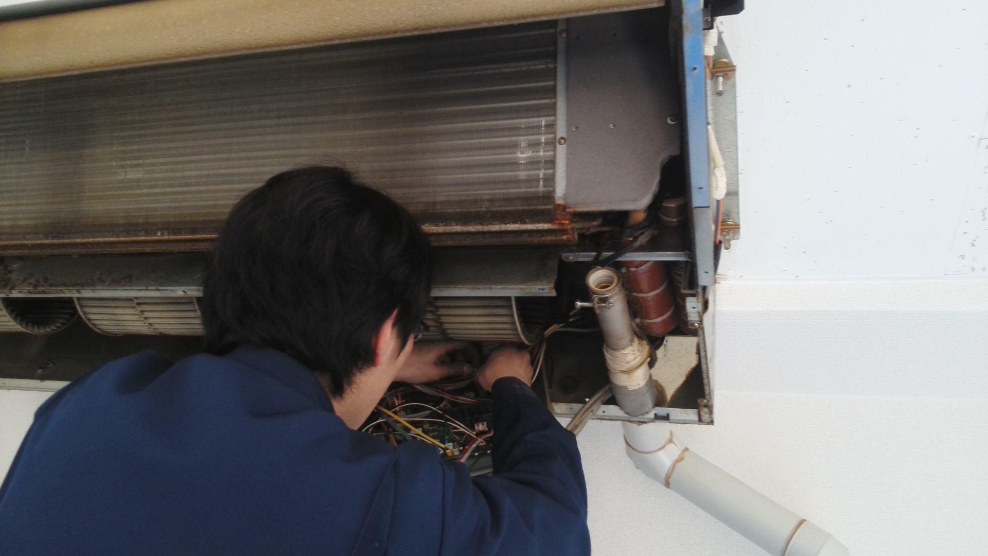 写真7:2F室内機の試運転をして完了です。