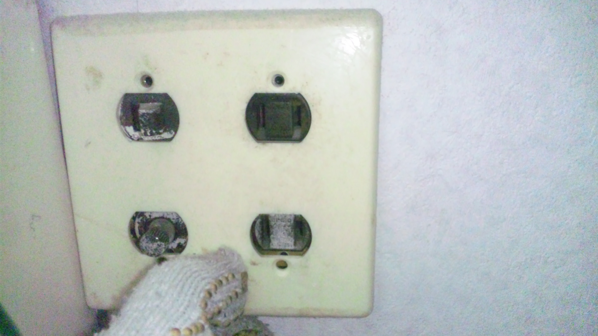 写真1:既存の現状、小判型コンセントにスイッチとアース付。