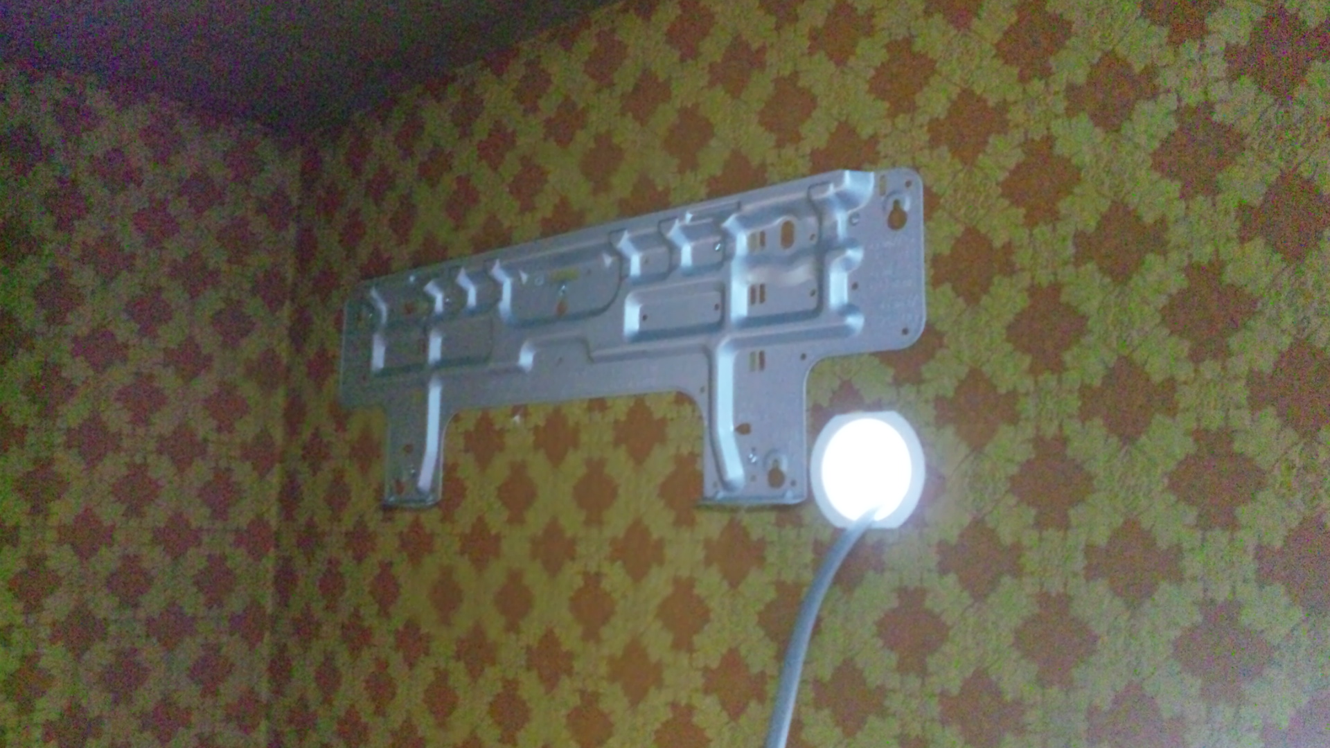 写真1:確かに既存の照明器具は、いびつに強く締め付けてしまったようで、いくら回してもカバーが外れないようでした。
