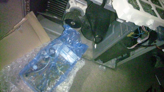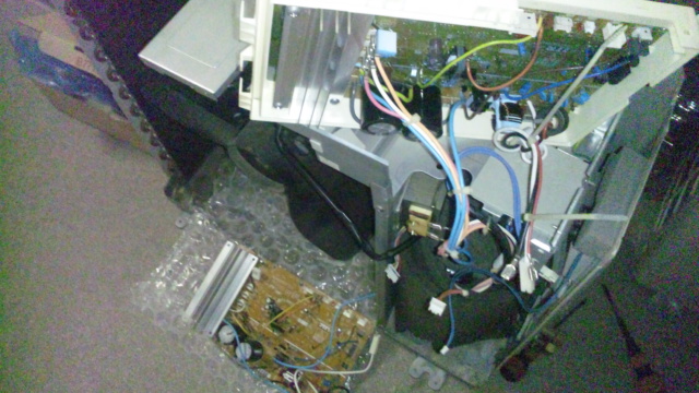 写真2:新しい室外制御基板に交換して、組み立てている所。
