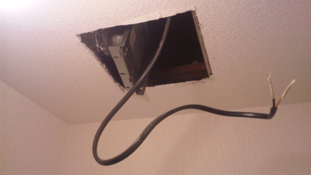 交換となると、天井石膏ボードを削って既存の埋め込み換気扇を取り外さなくてはなりません。(^^;