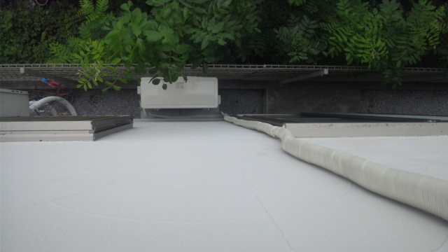 写真2:2Fより配管と1F室外機の様子・・・