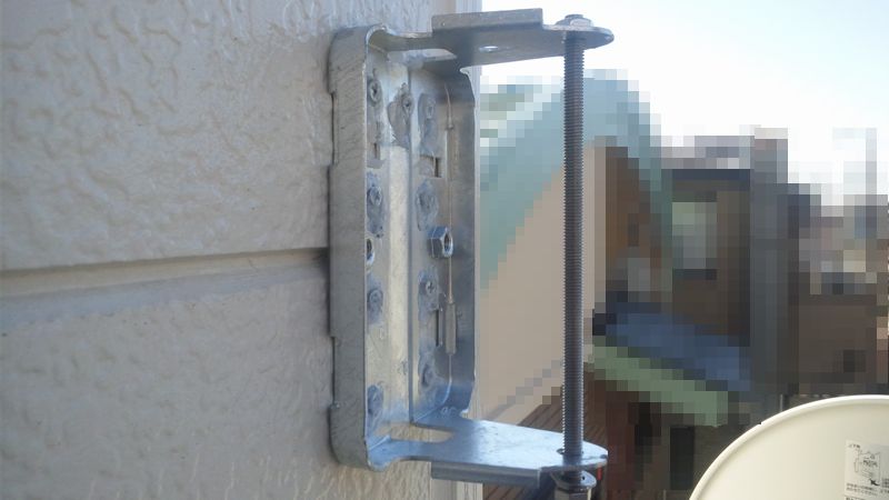 写真1:地上デジタル用平面アンテナの金具取付(下穴を防水コーキング剤or取付後のビスにもコーキング剤散布)