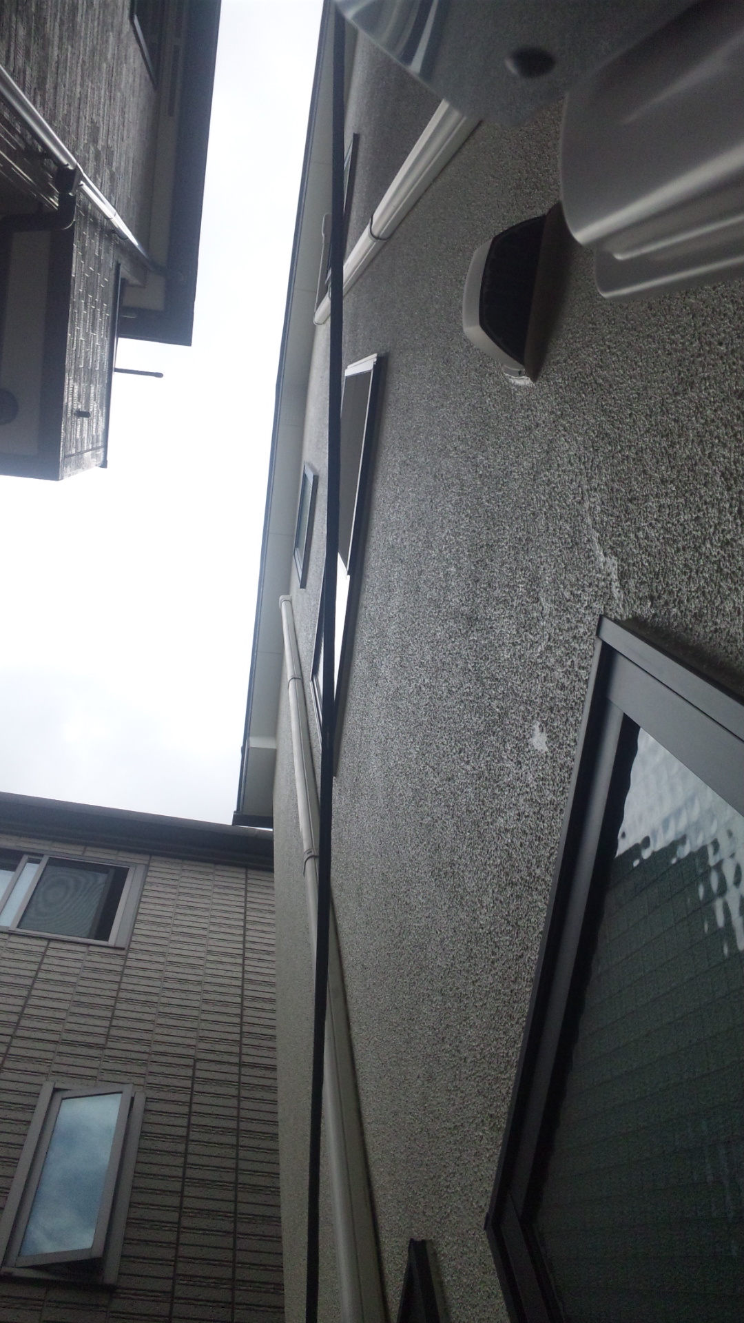 ですので、お隣にお断りして敷地に梯子ををかけさせて頂きました・・・が届かない!