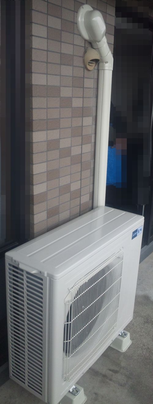 写真3:若干大きい室外機据え付け後の写真。省エネ性を高める熱交換機の為
