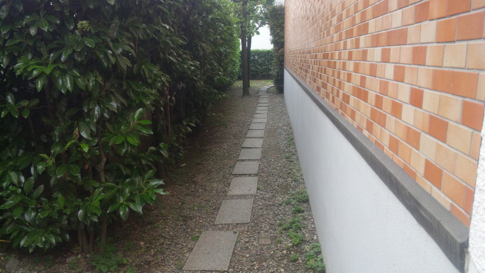 写真1:施工前の生活通路(左の木にクリスマスツリー用電球が取り付けられています)