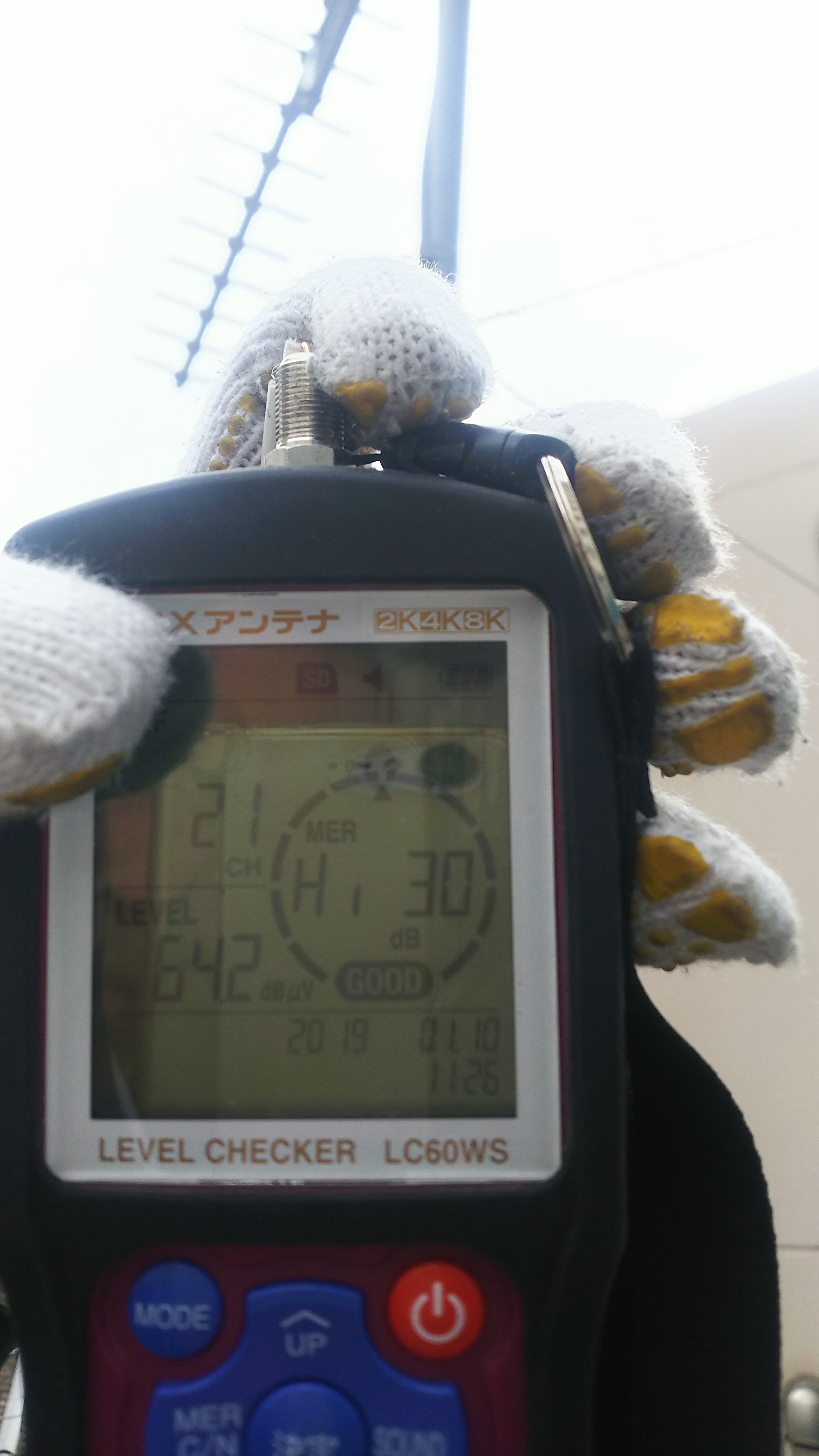 写真2:アンテナレベルも60dBμV以上、MERも最大値30dBで適正レベル以上。