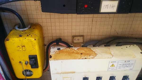 また、別のアパートでは、共用分電盤の漏電ブレーカーが下がる「漏電状態」で依頼が!