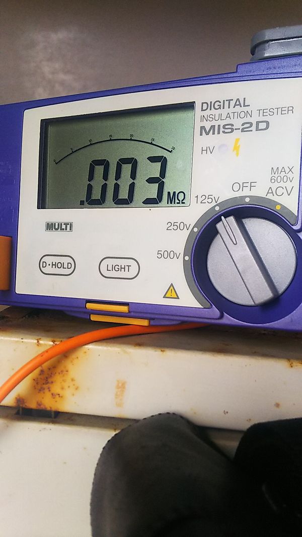 写真4:漏電状態を示す値「通常0.1MΩ以上必要」