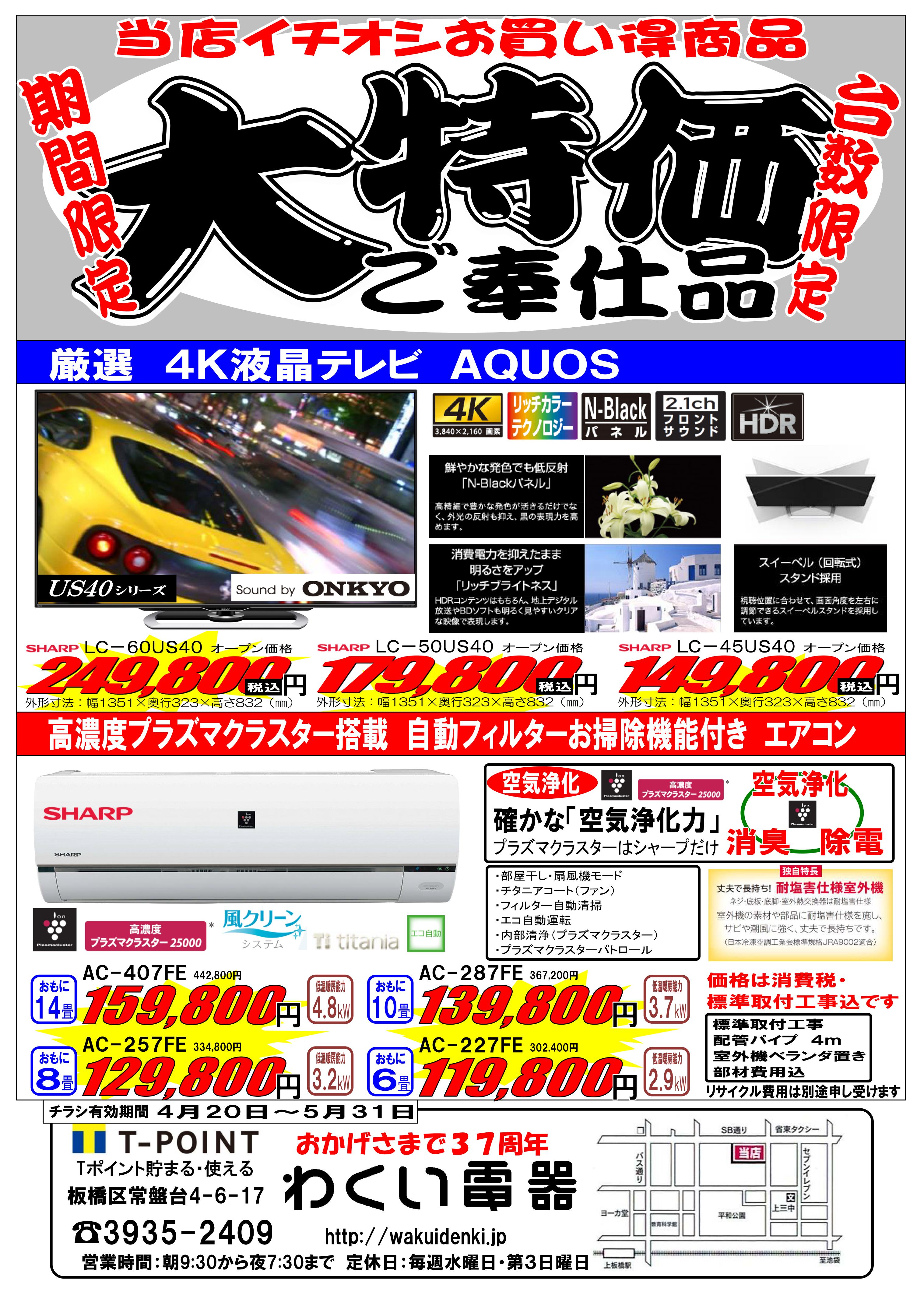4/14~5/15・SHARPキャッシュバックキャンペーンも開催中です!