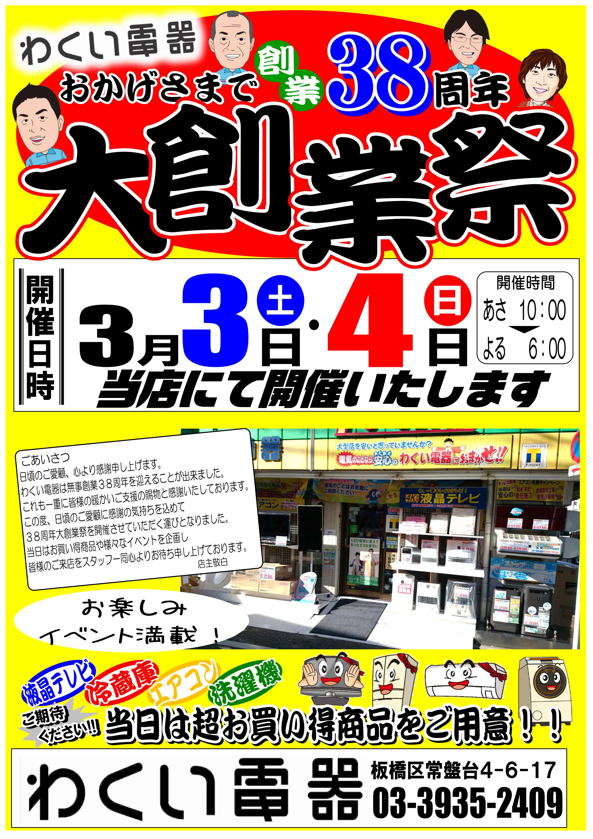 「おかげさまで38周年 大創業祭」を3月3日・4日開催いたします!