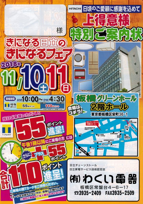いつもお世話になっております。きになる日立のきになるフェアを11月10日(土)11日(日)板橋グリーンホールにて