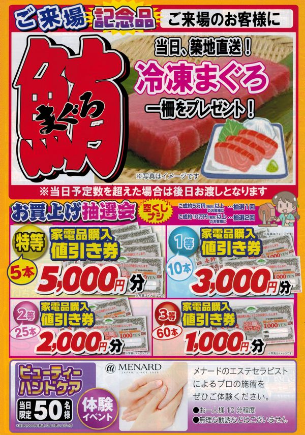 開催します!ご来場記念品は大好評の「冷凍マグロ」をご用意しております。