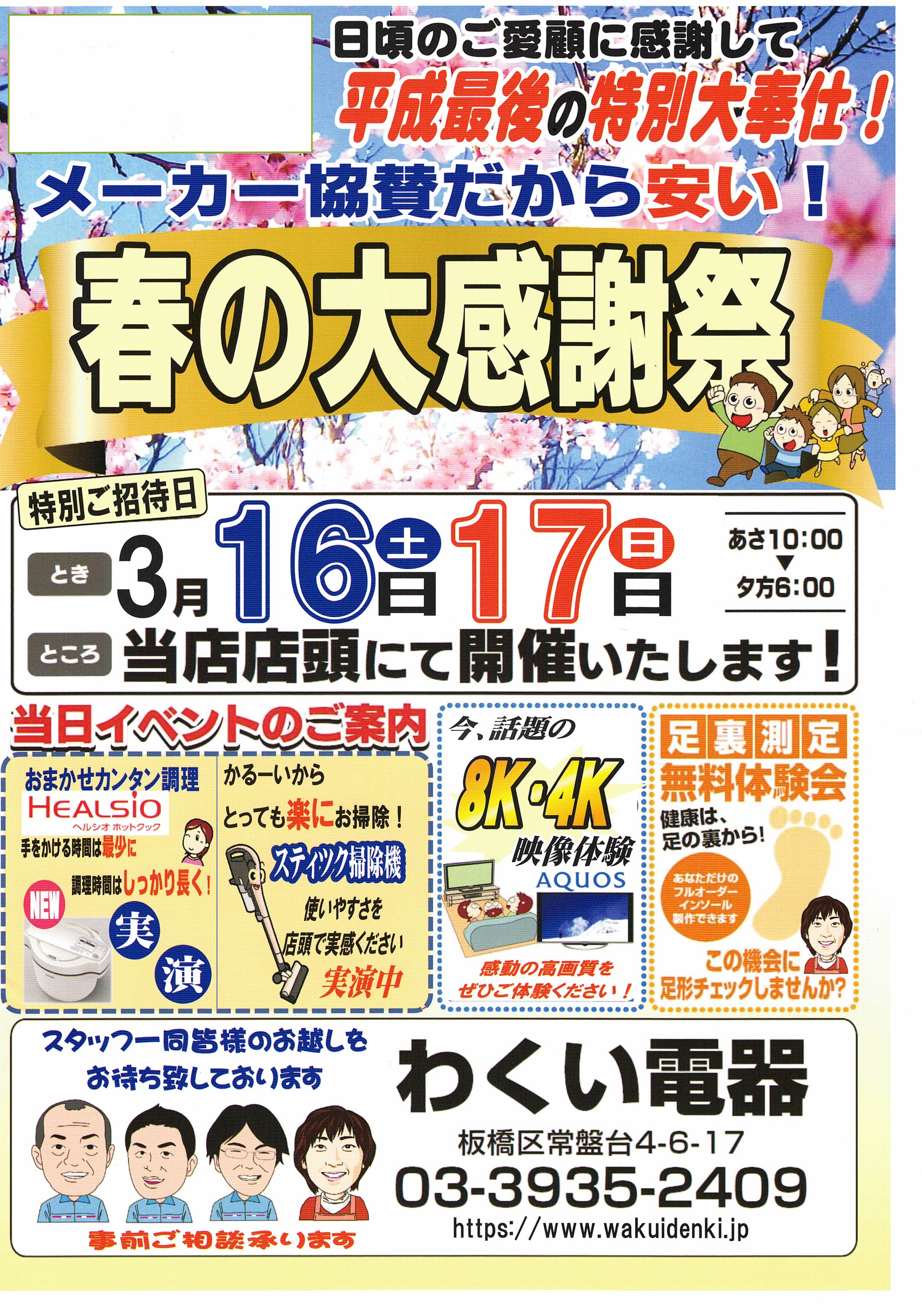 いつもお世話になっております。3月16日(土)・17日(日)当店にて「春の大感謝祭」を開催いたします!