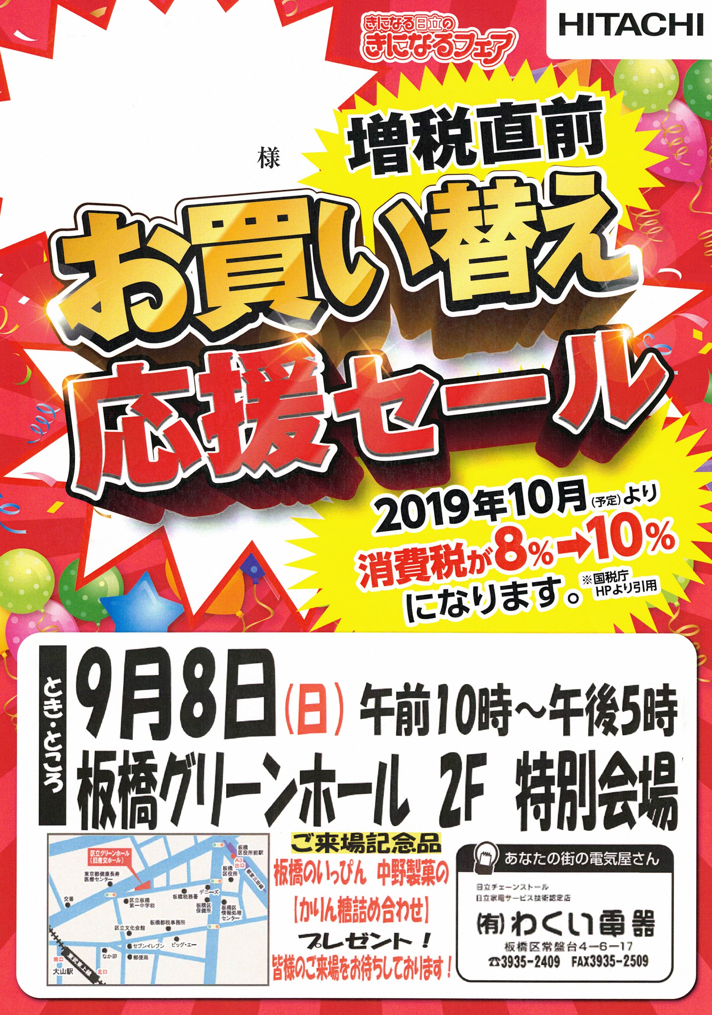 いつもお世話になっております。きになる日立のきになるフェアを9月8日(日)板橋グリーンホールにて開催します!ご来場記念品は「かりん糖詰め合わせ」をご用意しております。