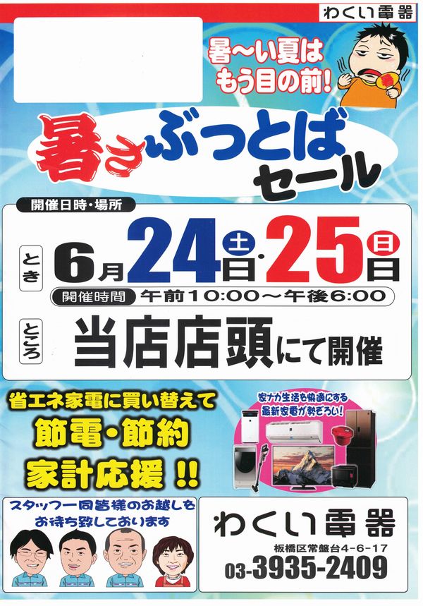 暑さぶっとばセール!6月24日25日開催!!