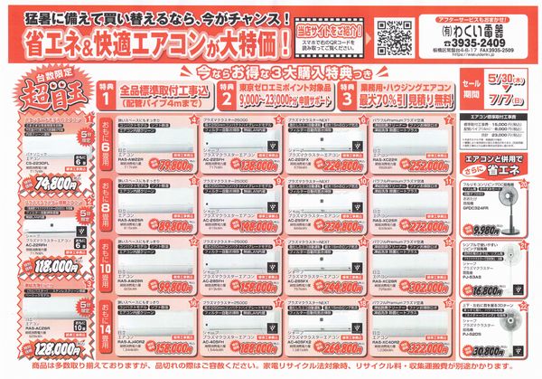 買い替え応援!エアコン祭!!折込チラシ6/7朝刊で!